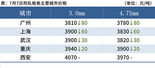 7月7日,國內(nèi)鋼材市場下跌為主,唐山遷安普方坯含稅降20報(bào)3550元/噸。成交方面,黑色系期貨明顯回落,市場心態(tài)轉(zhuǎn)差,低位資源涌現(xiàn),剛需及投機(jī)性需求較差。