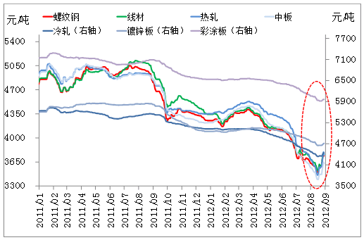 今年9月份以來,市場愈發(fā)撲朔迷離,在國家發(fā)改委審批萬億項目和美聯(lián)儲發(fā)布QE3以及英國推行OTC的推動下,鋼材市場呈現(xiàn)出“一波三折、寬幅震蕩”的運行態(tài)勢。一邊是國內外利好消息的刺激,另一邊是全球經濟的放緩和鋼材需求的低迷,多空雙方激烈博弈。各原材料品種、各鋼種以及各地區(qū)之間也表現(xiàn)迥異,有的品種、地區(qū)漲跌明顯,而另一些品種、地區(qū)則表現(xiàn)相對平穩(wěn),市場呈現(xiàn)出如此亂象的原因何在?未來鋼價走勢如何?下文就此進行闡述。