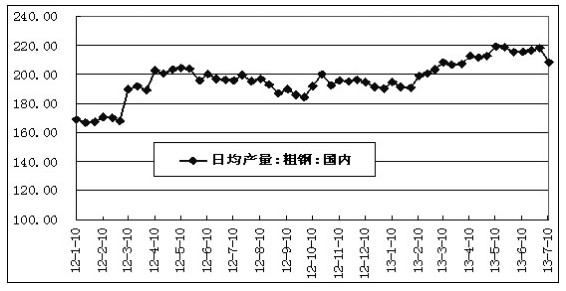 國內(nèi)粗鋼日均產(chǎn)量走勢圖